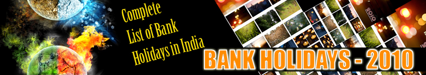 NOTE:- We will be shortly providing bank holidays 2010, seperately for all the twenty-eight states and seven union territories. In addition bank holidays will also be classified month-wise